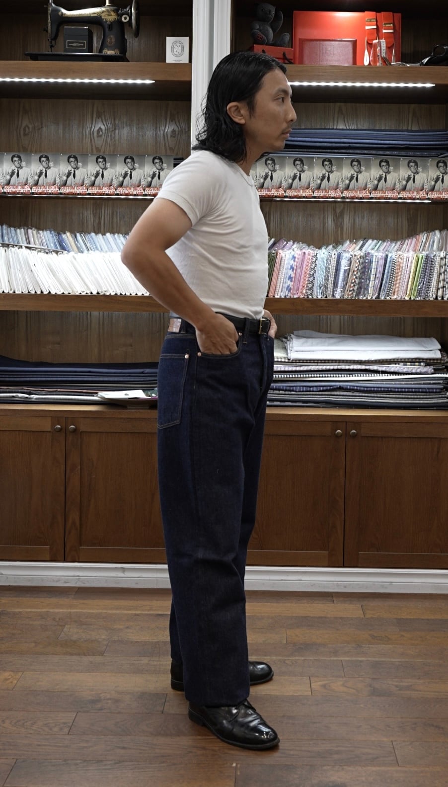 13.5ozとやや厚手のミドルトーンのインディゴブルーセルビッチデニムパンツ。