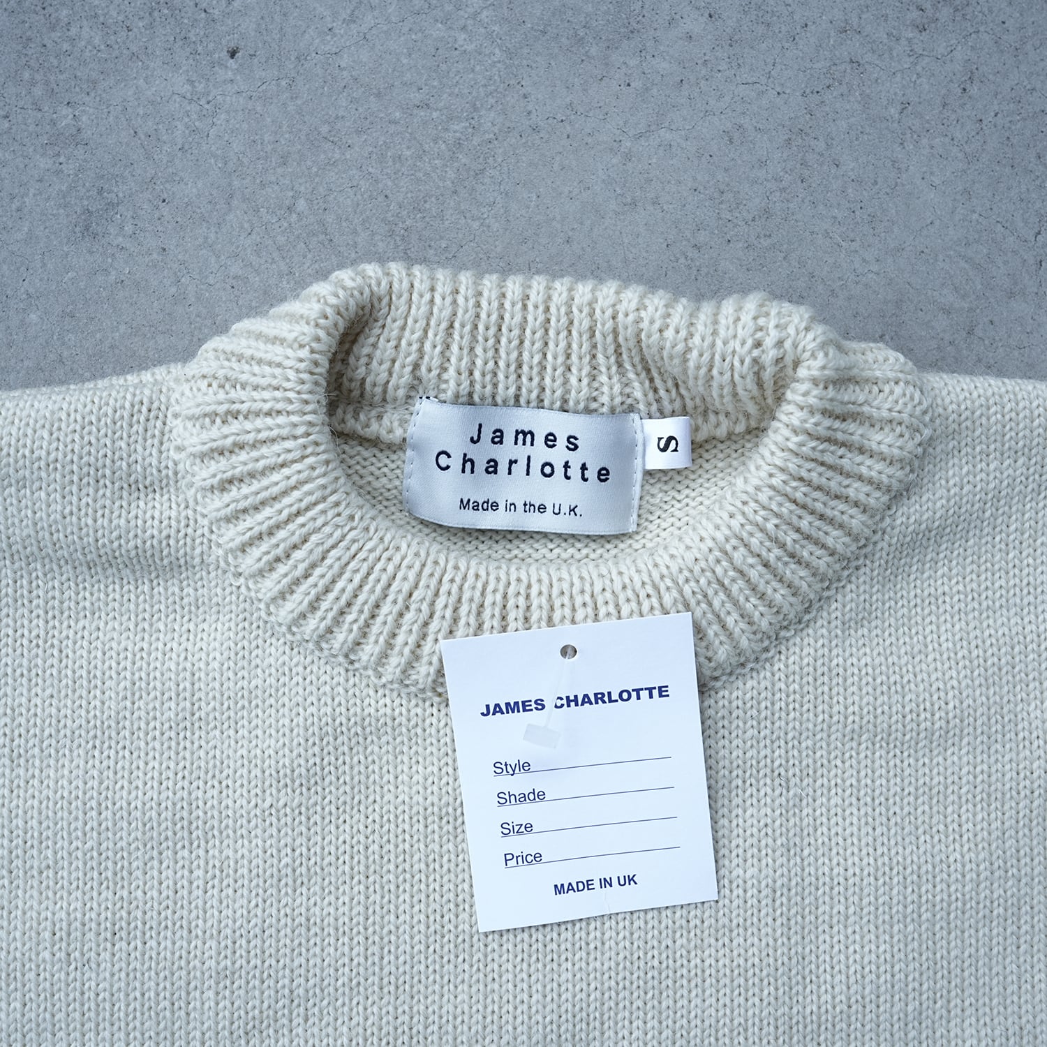 グリムスビー漁船の漁網修理のために150年前に建てられた建物を工場に、すべてのニットを、愛情を込めて熟練の職人によって製作するJames Charlotte (ジェームスシャルロット)です。