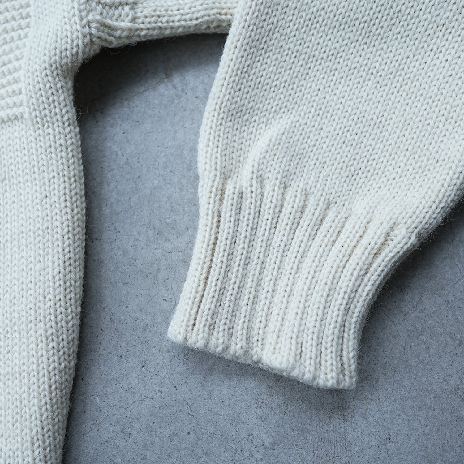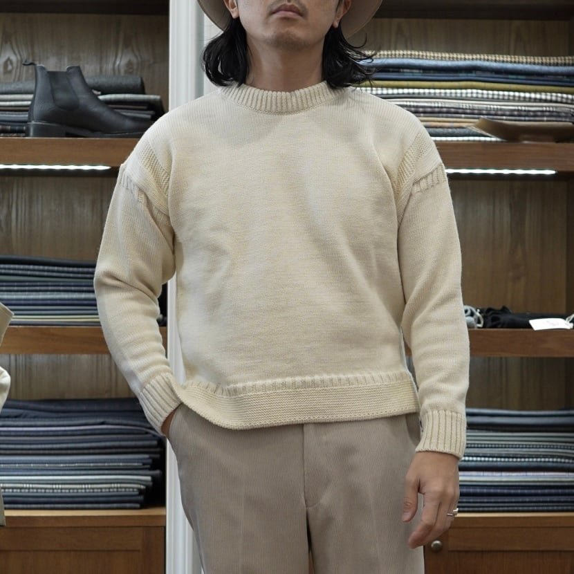 ズシッとウールの糸に油分を含んだフィッシャーマンズセーター (ガンジーセーター)
