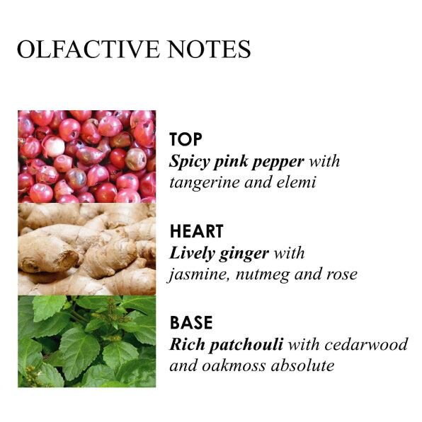 温かみのあるジンジャー、パチョリ、ファイアリーなピンクペッパーのブレンドによるスパイシーで華やかな香りのバス&シャワージェルです。豊かなアロマがバスルームに広がり、ラグジュアリーなバスタイムを演出します。バスタブに注いで泡立て、バブルバスとしてもお楽しみいただけます。